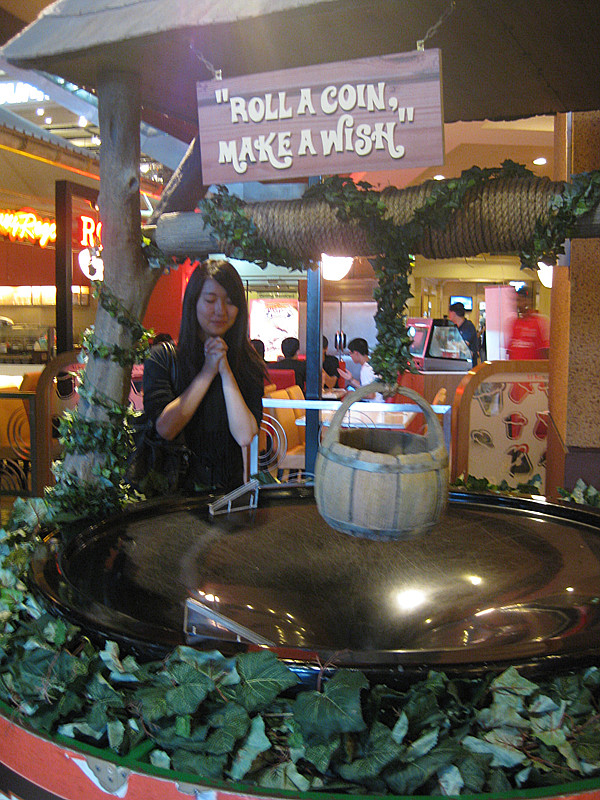 Ship...thrown 3 coins to make wishes,but no one can in the tong...